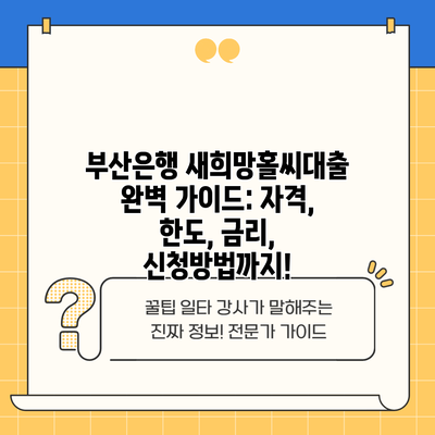 부산은행 새희망홀씨대출 완벽 가이드: 자격, 한도, 금리, 신청방법까지!