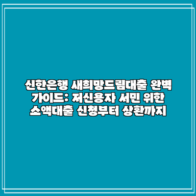 신한은행 새희망드림대출 완벽 가이드: 저신용자 서민 위한 소액대출 신청부터 상환까지