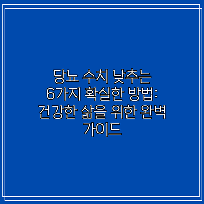 당뇨 수치 낮추는 6가지 확실한 방법: 건강한 삶을 위한 완벽 가이드