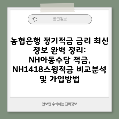농협은행 정기적금 금리 최신 정보 완벽 정리: NH아동수당 적금, NH1418스윙적금 비교분석 및 가입방법