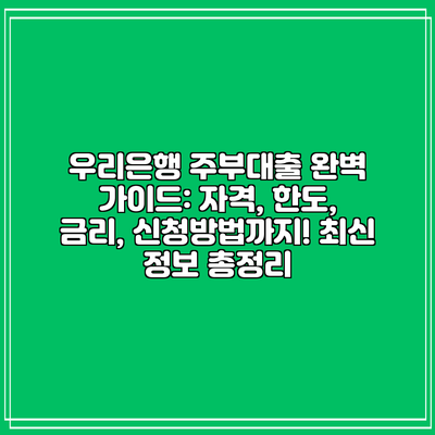 우리은행 주부대출 완벽 가이드: 자격, 한도, 금리, 신청방법까지! 최신 정보 총정리