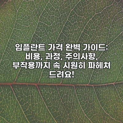 임플란트 가격 완벽 가이드: 비용, 과정, 주의사항, 부작용까지 속 시원히 파헤쳐 드려요!