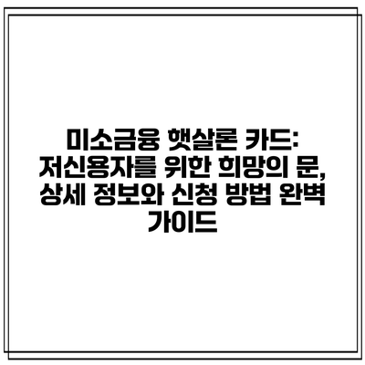 미소금융 햇살론 카드: 저신용자를 위한 맞춤형 카드