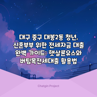 ✅ 대구 중구 대봉2동 청년, 신혼부부라면 놓칠 수 없는 전세자금 지원 혜택! 햇살론유스와 버팀목전세대출 자세히 알아보고 성공적인 주거 마련하세요.