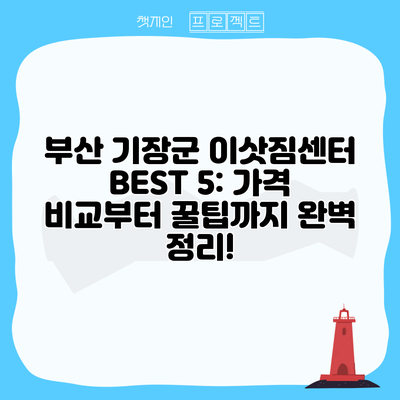 이제 부산 기장군에서 추천하는 5곳의 이삿짐센터를 소개해 드릴게요! 각 센터의 장단점을 비교해보고, 자신에게 맞는 곳을 선택하시면 돼요. 아래 표는 각 센터의 주요 정보를 요약한 것입니다.