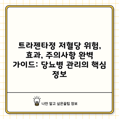 ✅ 트라젠타의 저혈당 위험, 효과, 주의사항 등 자세한 정보를 확인하고 안전하게 당뇨병을 관리하세요. 필수 정보를 요약하여 알려드립니다.