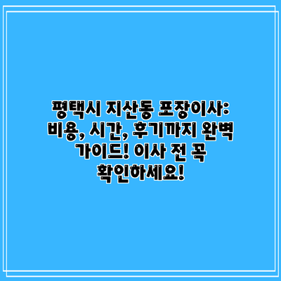 ✅ 평택 지산동 포장이사 비용, 시간, 후기 정보 한 번에! 합리적인 이사를 위한 꿀팁까지 모두 담았습니다. 지금 바로 확인하고 이사 스트레스 줄이세요!