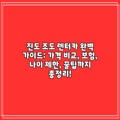 진도 조도 렌터카 완벽 가이드: 가격 비교, 보험, 나이 제한, 꿀팁까지 총정리!